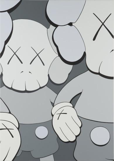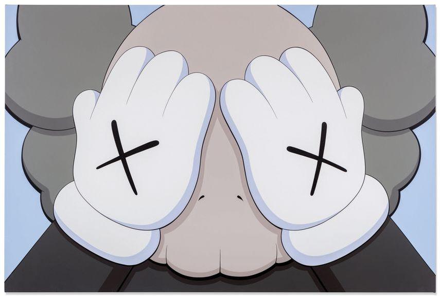 The Companion figure, characterized by its reflective, sometimes melancholic poses, engages with themes of vulnerability and contemplation. This character, despite its commercial origins, is deeply imbued with emotional depth, often seen covering its face in a gesture of despair or introspection. Its form, while invoking childhood nostalgia through its cartoonish silhouette, also introduces a critique of consumer culture and the commodification of emotion. This dual nature speaks to KAWS' ability to navigate between the worlds of high art and commercial design, making the Companion a compelling figure in the contemporary art landscape.