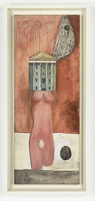 Moreover, the use of architecture in the series not only references the social constructs that attempt to define and confine individual identity but also creates a visual dichotomy between the physical body and the emotional, mental, and societal structures that encase it. This tension is further explored through the sculptures that evolved from the Femme Maison paintings, where Bourgeois experimented with various materials and forms to continue probing the themes of identity, memory, and the body.