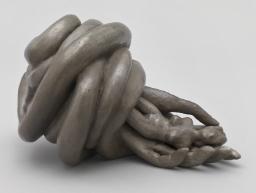 Another Nature Study from the same year, held by the National Galleries of Scotland, is cast in bronze with a silver nitrate patina, measuring 15.20 x 25.40 x 17.80 cm. This smaller sculpture also embodies cyclical themes of birth and rebirth, evident in the woman’s hair morphing into a knotted spiral from which she emerges. The hand in this sculpture is notably slender and delicate, crafted not from a direct cast but from a combination of casts and moldings, highlighting Bourgeois' skill in manipulating materials to evoke complex themes of control, disorder, and the cyclical nature of life (National Galleries of Scotland).
