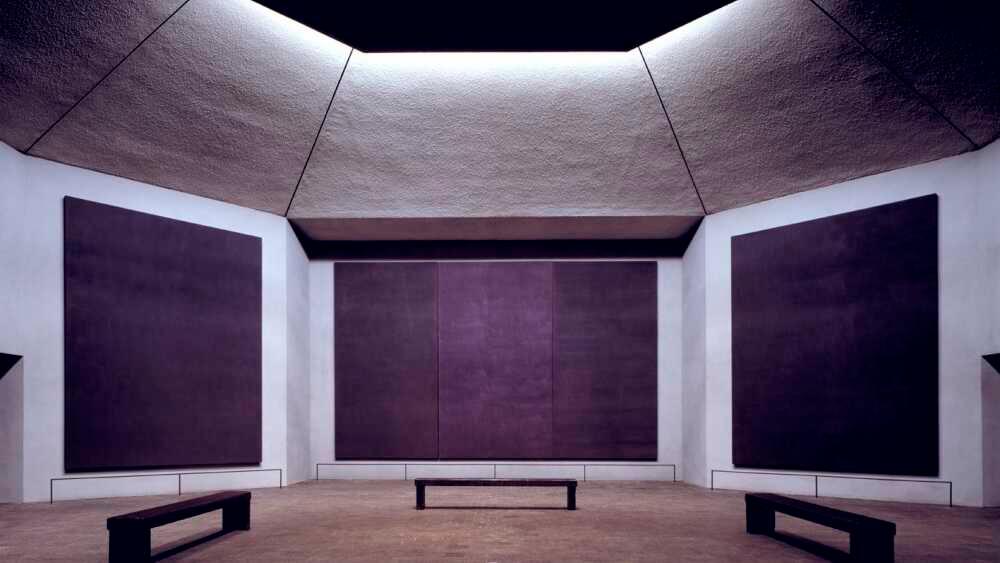The Rothko Chapel paintings, created by Mark Rothko between 1964 and 1967, are a profound embodiment of the artist's late career and philosophical inquiries into the nature of art, spirituality, and human experience. These works were commissioned by philanthropists John and Dominique de Menil for a non-denominational chapel in Houston, Texas, which opened in 1971. The chapel houses fourteen of Rothko's large-scale paintings, arranged as three triptychs on three walls and five single panels on the remaining walls. These paintings are known for their dark hues and the subtle interplay of textures, challenging the viewer's perception and evoking a meditative or contemplative state (www.wikiart.org).