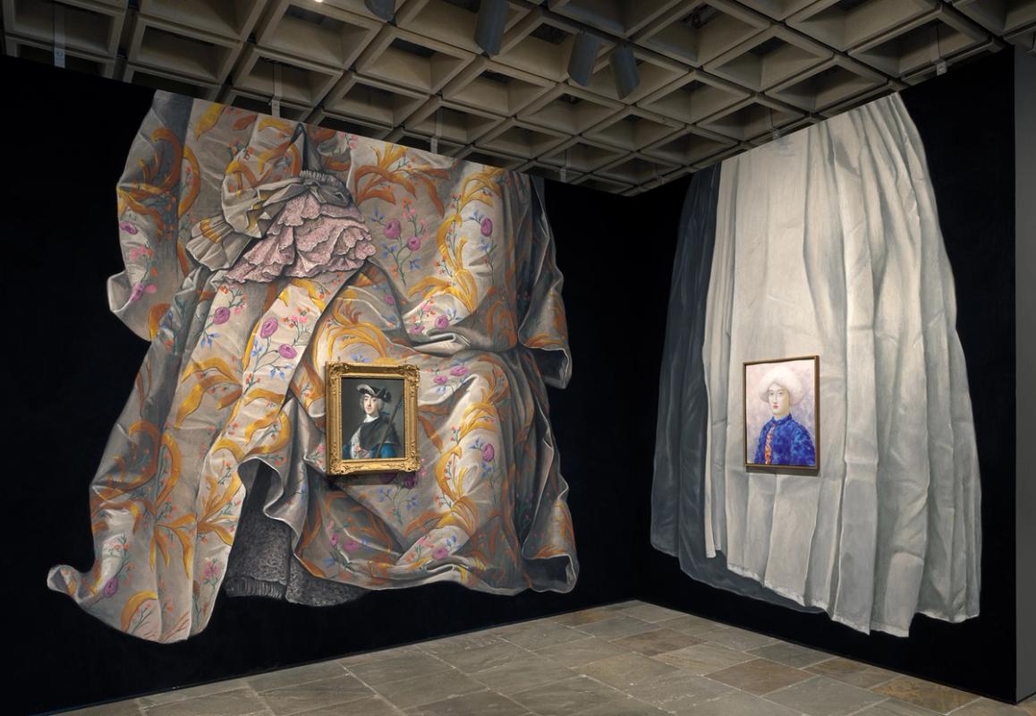 Nicolas Party's pastel mural at Frick Madison was created in response to Rosalba Carriera's "Portrait of a Man in Pilgrim’s Costume". This site-specific installation, part of the Frick's residency at the Breuer building through March 3, 2024, features Party's new works alongside Carriera’s portrait, enveloping viewers in a blend of historical and contemporary art through Party's vibrant murals and elaborate draperies that evoke European pastels (The Frick Collection).