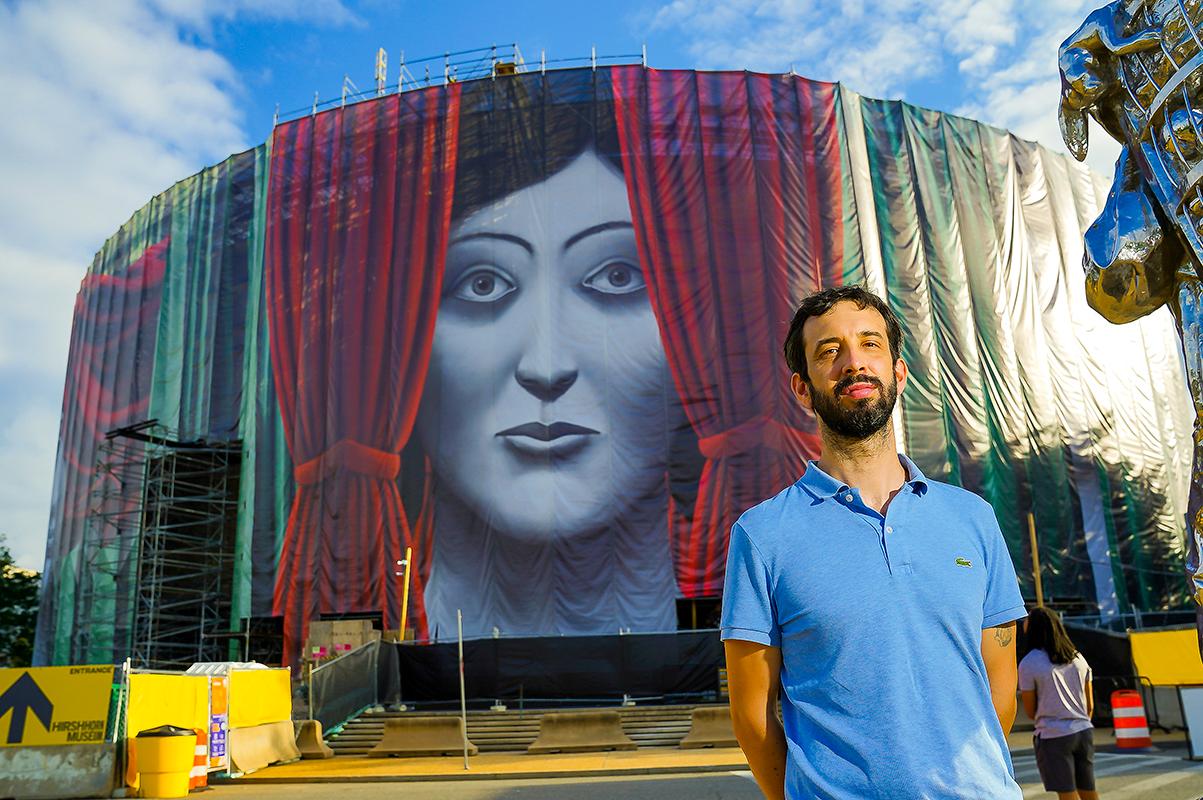 The Hirshhorn Museum commissioned Swiss artist Nicolas Party to create a large-scale, immersive mural titled "sunrise, sunset" in summer 2017. This site-specific mural, painted directly onto the museum's wall, spanned nearly 400 feet, encircling the inner-ring gallery. It depicted the daily phenomena of sunrise and sunset, using them as metaphors to explore the themes of time's cyclical nature and the continuity between past, present, and future. This work marked Party's first solo exhibition in Washington, D.C. (Smithsonian Institution).