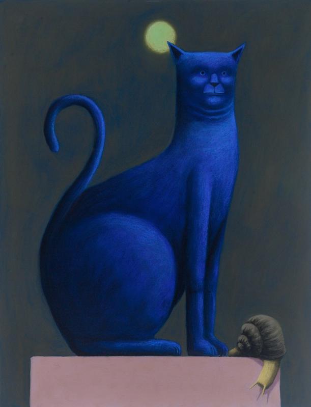 Party’s technique in painting cats involves the use of soft pastels, a medium that allows him to create rich, saturated colors and smooth, detailed textures. This medium enhances the lifelike quality of the cats while also giving them a surreal, almost otherworldly presence. His cats are rendered with exaggerated features and playful expressions, capturing the essence of these animals while also imbuing them with a sense of personality and mystery (Artsy) (Ocula).
