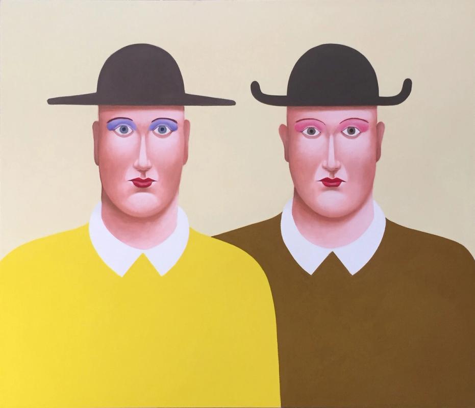 The thematic elements of these double portraits often reflect Party’s interest in art history and classical portraiture. By incorporating elements reminiscent of Renaissance and Baroque portraiture, Party’s work connects contemporary viewers with historical artistic traditions. This blend of old and new is evident in his careful attention to the composition and balance of each portrait, as well as the subtle interplay of light and shadow that adds a three-dimensional quality to the figures (Xavier Hufkens) (Artnet).