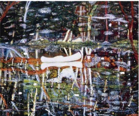 Peter Doig's Canoe series, especially "White Canoe," represents a pivotal moment in contemporary art, bridging the gap between traditional painting and postmodern critique. It reflects a deep engagement with the physical and conceptual possibilities of paint, offering a rich, layered experience that challenges and enchants viewers. Through his work, Doig asserts the relevance and vitality of painting, inviting us to see the world anew with each stroke of his brush.