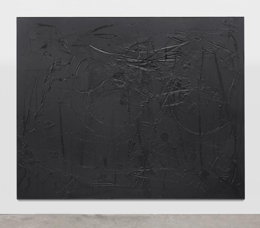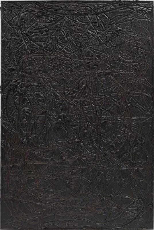 Rashid Johnson's "Cosmic Slop" series represents a significant exploration within his broader body of work, focusing on gesture, materiality, and the act of painting itself. Johnson regards these works as paintings, a medium through which he reintroduced painting into his practice. The creation process of the "Cosmic Slop" pieces is almost meditative for Johnson, offering him a space to engage deeply with his materials—black soap and wax—and to reflect on the authenticity and authorship of his gestures. These materials, which solidify as he works, require Johnson to interact with them within a limited timeframe, emphasizing the immediacy and temporality of his creative process (The Museum of Modern Art).