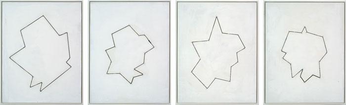 Each piece in this series varies in size but typically follows a similar composition style. The works are characterized by their abstract forms, where rubber bands are stretched and stapled across the canvas, interspersed with bold strokes of acrylic paint. This combination produces a visually arresting effect, blending the mundane with the abstract and inviting viewers to contemplate the relationship between the two (Artnet News).