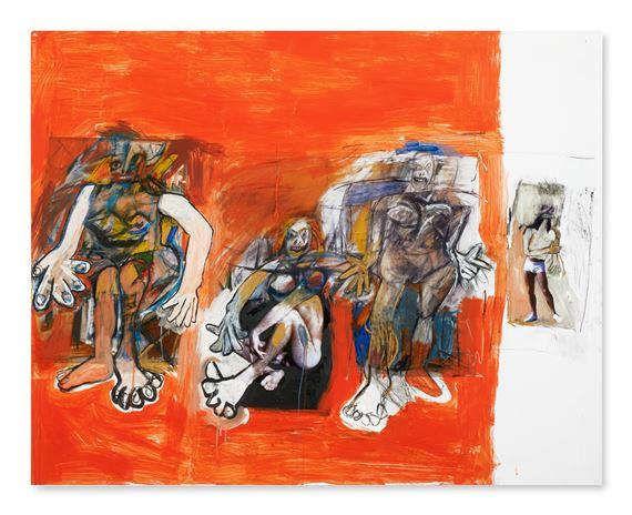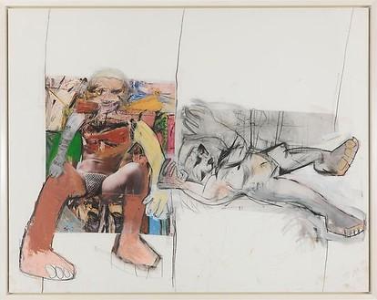 The process behind these works involved a meticulous layering of media and meaning. Prince began by altering the reproductions with graphite and oil crayons, adding outlines, textures, and silhouettes to the original figures. This manipulation was further intensified by the addition of collage elements cut from catalogues and vintage pornographic magazines, which contributed to the creation of hybrid or hermaphroditic characters. These elaborately reworked images were then enlarged via ink-jet printing onto monumental canvases, with Prince painting over these canvases in a style reminiscent of de Kooning's own. This series is not just a simple act of appropriation; it is a complex dialogue between Prince's and de Kooning's artistic languages, exploring the intersections of male and female, painting and print, high art and mass culture (Sothebys.com).