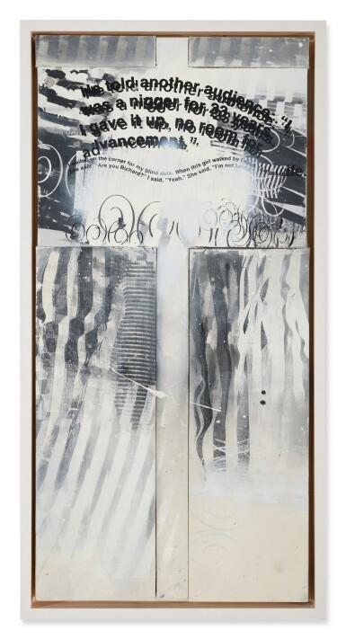 Richard Prince's "Protest Paintings," created between 1986 and 1994, represent a pivotal series in his oeuvre, showcasing a blend of humor, political commentary, and art historical references. This body of work, which was the focus of Prince's sixth solo exhibition at Skarstedt Gallery, is marked by its use of vertical canvases shaped like protest placards, symbolizing the spirit of countercultural movements and the American right to free speech. The paintings feature a mix of monochromatic minimalism and colorful abstraction, incorporating elements like recycled jokes, both printed and handwritten, as well as pattern details silkscreened onto the canvas (Skarstedt) (Artlyst).