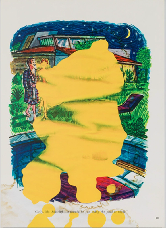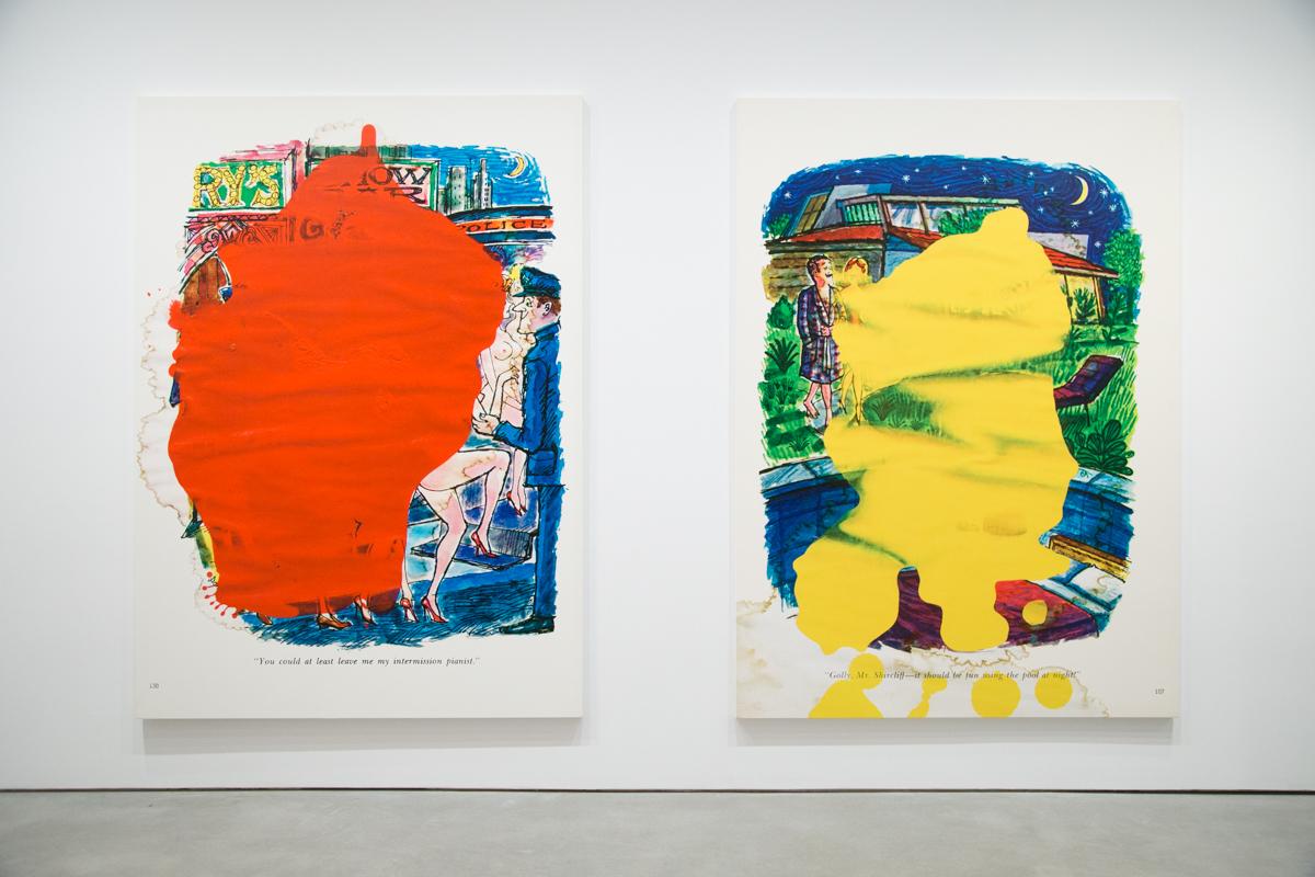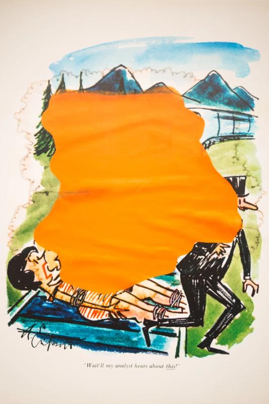 The technique behind the "Ripple Paintings" involves an interesting interplay between watercolors and the original ink cartoons. Prince began by tearing out his favorite cartoons from Playboy issues he had collected, placing the torn pages on the floor, and then adding his own watercolor washes over these cartoons. This method of layering watercolor on watercolor allowed the paper to ripple as it dried, giving each piece a distinct texture and personality. Prince's contributions were not merely physical but also conceptual, blending his artistic interpretation with the original artwork to create something new yet deeply connected to the source material (Gladstone Gallery).