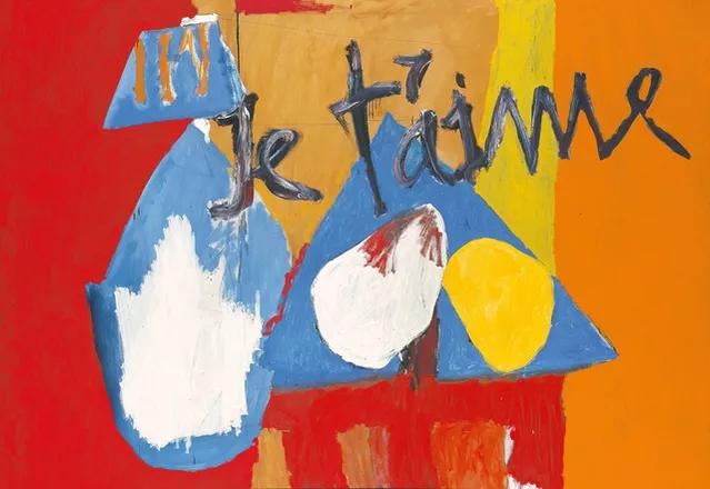 The "Je t’aime" series by Robert Motherwell, created between 1953 and 1957, represents a significant phase in the artist's exploration of Abstract Expressionism, marked by emotionally charged brushwork, vivid colors, and the use of his signature ovoid and rectilinear forms. This period in Motherwell's career coincided with the end of his second marriage, a time that may have influenced the intense emotional expression found in these works. Unlike the stark monochromatic palette of his "Elegies to the Spanish Republic" series, the "Je t’aime" paintings feature a brighter and broader range of colors, reflecting a diverse emotional and aesthetic exploration.