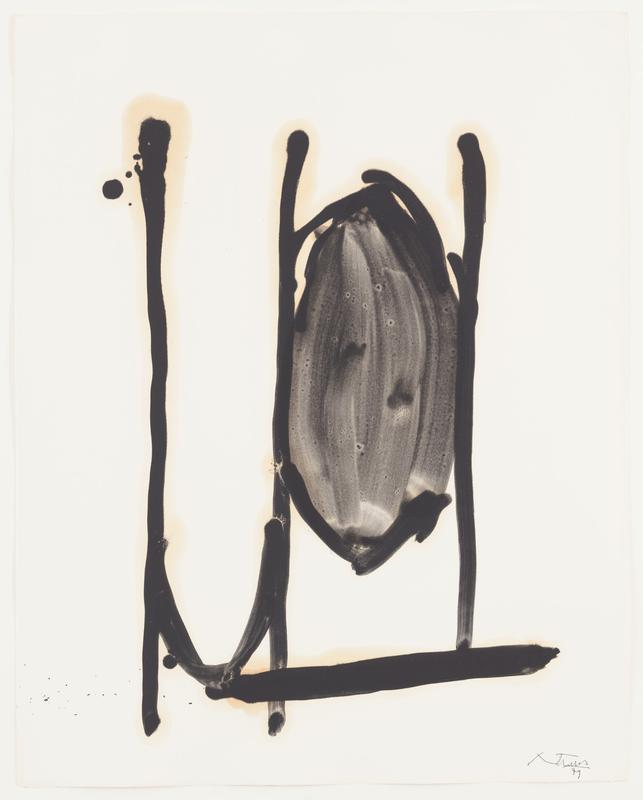 Robert Motherwell's Drunk With Turpentine series, created in 1979, is a notable collection within his prolific body of work. These pieces, executed in oil on paper, are distinctive for their use of automatism, a method Motherwell adopted from his early interactions with Surrealist artists, which emphasizes spontaneous and subconscious creation. This approach became a lifelong creative principle for Motherwell, profoundly influencing his work across various series throughout his career (The Modern Art Museum of Fort Worth) (The Museum of Modern Art).