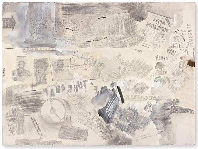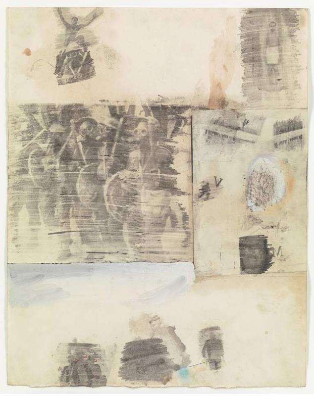 Rauschenberg's initial experiments with the transfer technique began during a trip to Cuba in 1952, marking the inception of a method that would become central to his artistic practice for years to come. By applying solvent to printed images and then pressing them onto paper, Rauschenberg was able to transfer the images directly onto his drawings, creating what he described as "pictorial poems." These works stood out for their ability to juxtapose contemporary visual culture with hand-drawn and painted elements, offering a nuanced critique of the excesses of the media landscape of the time (Rauschenberg Foundation).