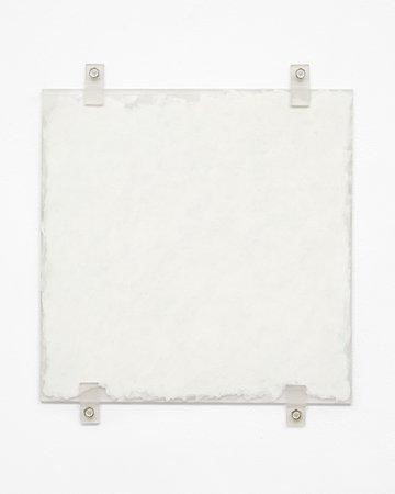 The inclusion of square black oxide steel fasteners and hex bolts in this work not only secures the painting to the wall but also becomes an integral part of the artwork's aesthetic and conceptual framework. The visible fastenings, along with ruled pencil lines, expose the typically hidden mechanisms that attach paintings to walls, inviting viewers to contemplate the painting's construction and its relationship to space (The Museum of Modern Art). This innovative use of materials and fasteners exemplifies Ryman's interest in the essence of painting, focusing on the physical presence and materiality of the artwork rather than representational content (www.wikiart.org).