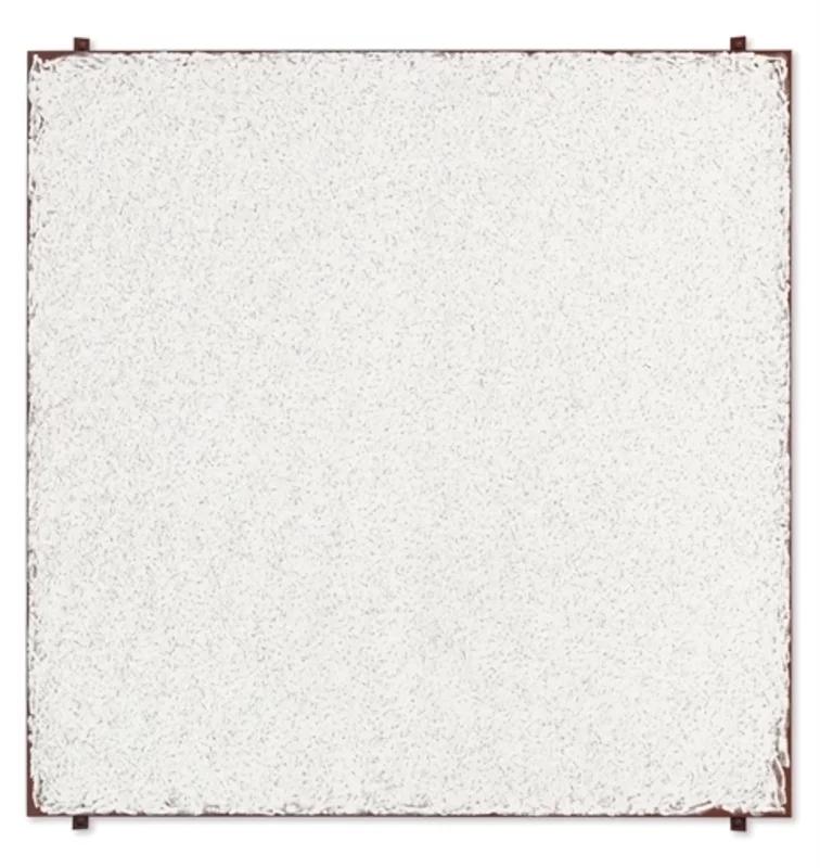 The use of fasteners in Ryman's work is reflective of his broader practice, which emphasizes the physical properties of his materials, whether paint, canvas, paper, or the hardware used to display his works. By making the means of display a visible part of his art, Ryman challenges traditional notions of painting as a window into another world, instead presenting it as a physical object that exists in our space and demands to be experienced on its own terms.