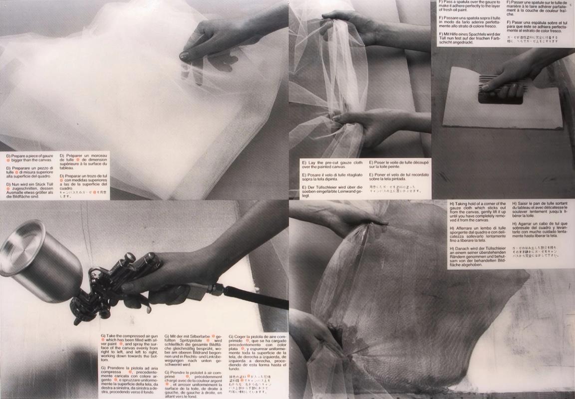 Rudolf Stingel's Instruction Paintings are a fascinating aspect of his artistic oeuvre, blending conceptual art with a hands-on approach that invites audience participation and challenges traditional perceptions of authorship and creation. Conceived in 1989, these paintings are based on a methodical process detailed by Stingel in a manual that was published in six languages. This manual provides step-by-step instructions for creating an abstract painting using oil paint, a piece of fabric, and silver enamel, emphasizing the idea that anyone could produce a work of art following Stingel's guidelines.