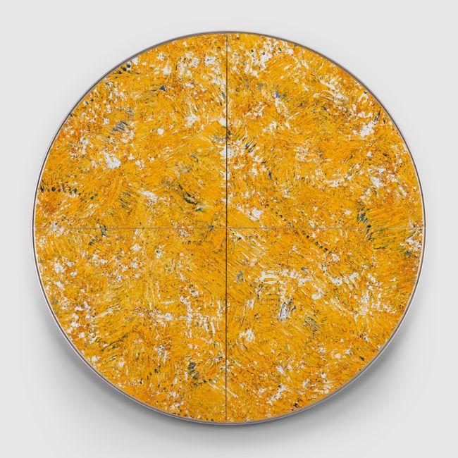 Gilliam's tondo paintings were notably featured in a major 2022 exhibition at the Hirshhorn Museum and Sculpture Garden in Washington, D.C., highlighting the importance of these works within his broader artistic practice. One work from this series, "Lucky" (2021), exemplifies Gilliam's mastery of color and form, and was included in the subsequent presentations at both Pace and David Kordansky galleries, further solidifying the significance of the tondo series in Gilliam's late career (Pace Gallery).