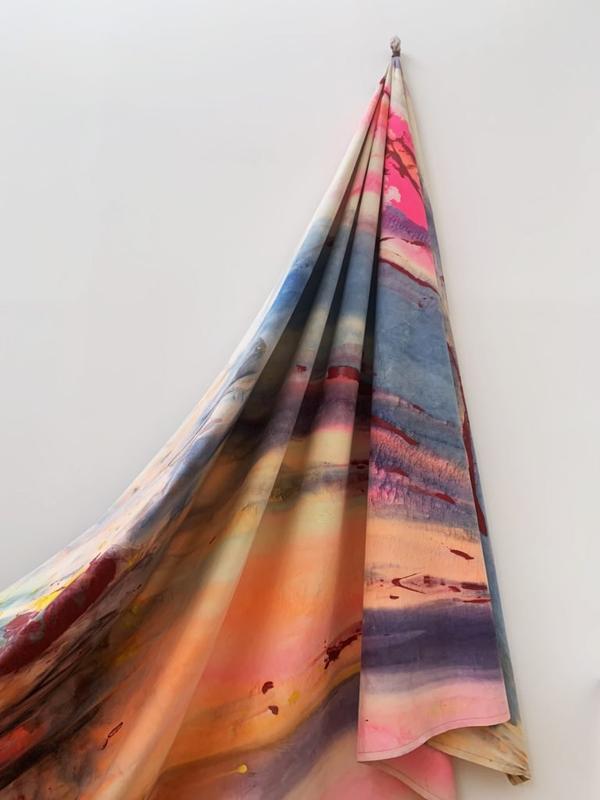 These artworks are characterized by their radical presentation—unstretched canvases that are draped, hung, or suspended in space, blurring the lines between painting, sculpture, and installation. Inspired by the sight of laundry hanging from lines, Gilliam saw potential in the canvas's materiality, allowing it to fold and flow freely within the exhibition space. This method not only challenged the conventional display of paintings but also introduced a dynamic element to the work, as the canvases could be rearranged and displayed in various forms, making each installation unique (Smithsonian American Art Museum).