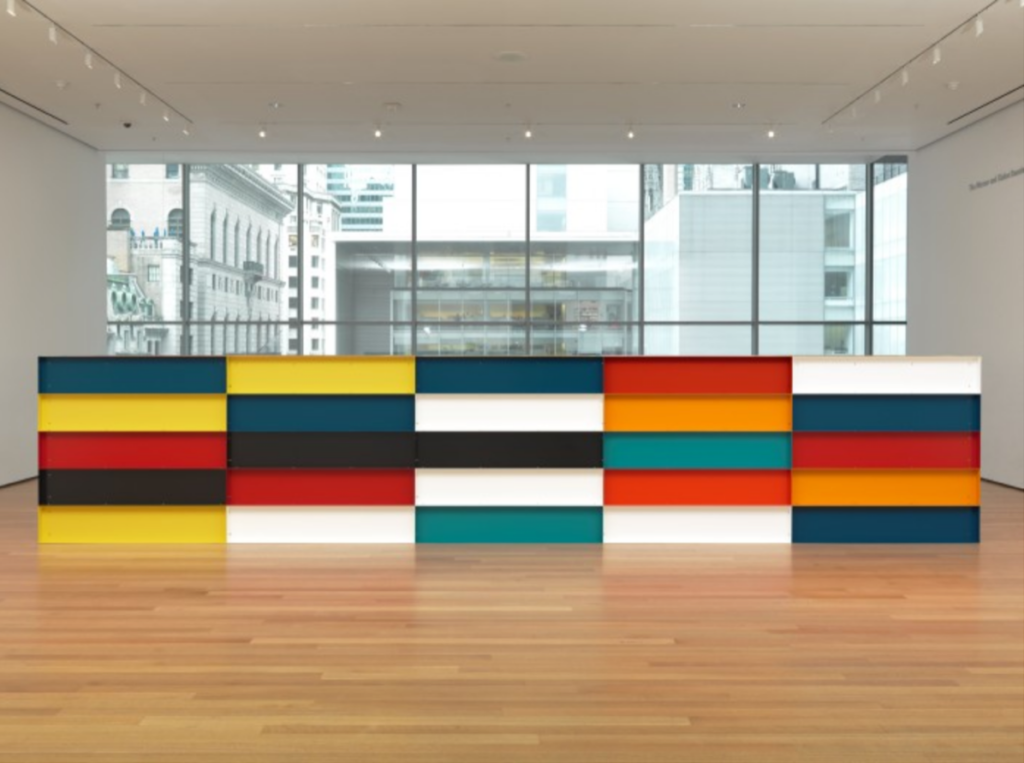 He frequently used grids and repetitive modular units, exploring systematic approaches to art-making.