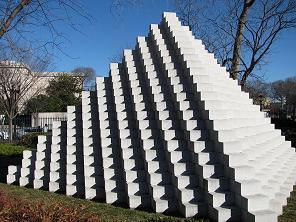 Sol LeWitt, a pioneering figure in conceptual and minimal art, extensively explored geometric forms in his artworks, including the pyramid shape. His "Four-Sided Pyramid," first conceptualized in the 1960s and physically realized in 1999 at the National Gallery of Art Sculpture Garden in Washington, D.C., is a prime example of his engagement with modular, quasi-architectural forms. This work, made from concrete blocks and mortar, stands as a testament to LeWitt's innovative approach to art-making, where the idea or concept behind the work precedes its physical execution (Wikipedia) (Wikipedia).