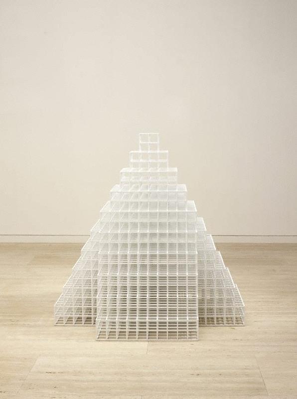 "Four-Sided Pyramid" is particularly notable for its terraced design, reminiscent of ancient Mesopotamian ziggurats and the geometric structure of early 20th-century skyscrapers following the repeal of New York City's setback laws. LeWitt's fascination with the cube and square as basic components for his art during the 1960s laid the groundwork for his later exploration of pyramidal structures, employing these forms for their geometric regularity and potential for infinite multiplication and permutation (National Gallery of Art) (National Gallery of Art).