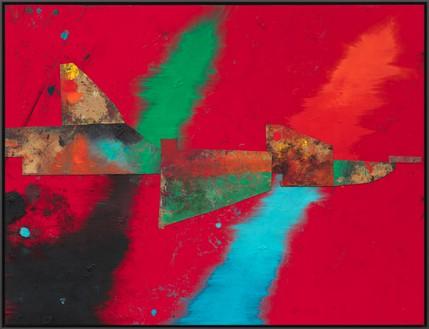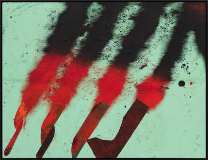 Sterling Ruby's TURBINE series, initiated in 2021, represents a significant development in the artist's exploration of painting and collage. Exhibited at Gagosian in New York from November 10 to December 23, 2022, this body of work converges several of Ruby’s artistic concerns and methodologies, employing a mix of materials like acrylic, oil, and cardboard on canvas. The TURBINE series evolves from his earlier WIDW paintings, moving away from their defined vertical structures to embrace energetic, intersecting diagonals. This shift in composition suggests dynamic and chaotic forces at play, evoking natural and human-made turbulences like hurricanes, explosions, and wars, pushing the elements toward the canvas edges (Gagosian) (GalleriesNow) (FAD Magazine).