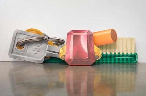 Tom Wesselmann's "Standing Still Lifes" series, created between 1967 and 1981, comprises monumental works that assemble everyday objects into large-scale structures. These pieces, which were first collectively presented at the Gagosian Gallery in New York, challenge the viewer's perception, appearing to advance or recede based on the observer's position. The series, including works like "Still Life #60" and "Still Life with Belt and Sneaker," primarily features objects associated with female use, reflecting societal beauty standards and consumerism of the 1970s. The exhibition not only showcases the final artworks but also includes drawings, diagrams, and models that offer insight into Wesselmann's creative process. This was the first time these still lifes were exhibited together, with most of them being owned by the artist's heirs (Obras Bellas Artes).