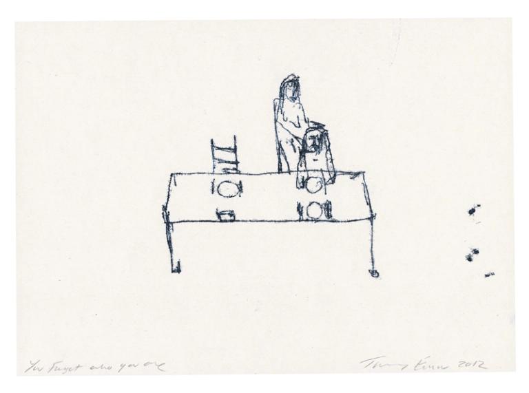 Monoprint drawing and printmaking have been essential to Emin's creative practice from the onset of her career, forming the backbone of her intimate and diaristic approach to art. The medium allows for an exploration of a range of subject matters, from explicit nudes to motifs like birds and squirrels, often serving as self-portraits. Emin's engagement with printmaking is marked by a continuous exploration of the medium, showcasing her commitment to expressing her imagery in its most immediate form. The "Walking With Tears" exhibition at the Royal Academy of Arts in 2010 was particularly notable for exclusively featuring Emin's work in this medium, demonstrating the breadth and depth of her exploration in printmaking over the years (Lehmann Maupin).