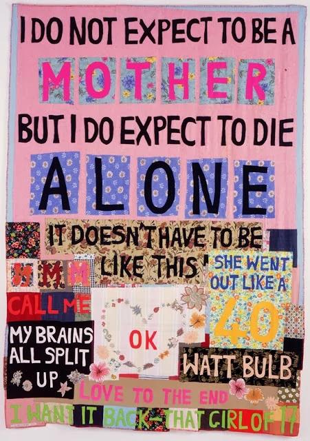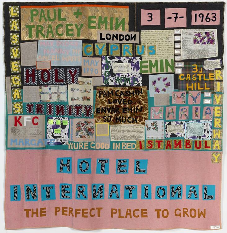 Emin's textile pieces, notably her appliquéd blankets, are characterized by their large size, vibrant expression, and the presence of deliberate misspellings, which lend a raw, unmediated quality to the narratives they unfold. These works are described as outbursts, where the immediacy of the expressive phrases and the tension between content and method of production converge to create works of powerful emotional resonance (Mr X Stitch).