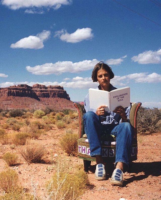 The photograph features Emin in Monument Valley, a striking desert landscape on the Utah-Arizona border, holding her book "Exploration of the Soul." This book, written by Emin, is a deeply confessional text, and during the trip, she would give readings from it at various stops along the way. The image itself includes a velvet armchair that belonged to her great-grandmother, adding another layer of personal history and familial connection to the work. Emin also embroidered the names of the locations she visited onto the chair, making the piece a living document of her journey (TheCollector) (Elephant Art) .