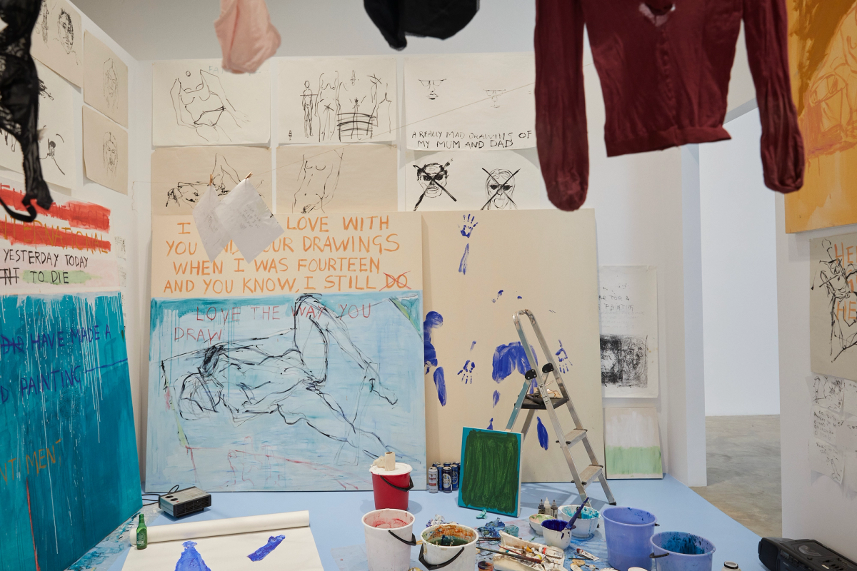 The room itself became an all-encompassing installation filled with 14 paintings, 78 drawings, five body prints, and numerous personal items, including a bed and various other pieces of furniture. This setting allowed Emin to exorcise her fears and traumas associated with painting, a medium she had abandoned six years prior following two abortions and a period of profound personal distress. This work marked her attempt to reconcile with painting, using her body and experiences as both the subject and the medium of her art (Christie's) ('Faurschou').