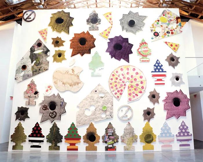 Guyton's technique also extends into collaborative realms, particularly in his projects with Kelley Walker and other artists. These collaborations often explore the extension of his printing techniques onto other media and objects, such as sculptures, installations, and three-dimensional canvases, further blurring the lines between different art forms.