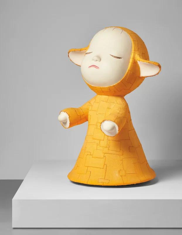 "The Little Pilgrim (Night Walking)" features a sleep-walking figure that has appeared in Nara's work since a 1999 solo exhibition. This particular piece is characterized by its smooth, translucent surface, with the figure holding out her hands slightly and keeping her eyes gently closed, evoking the image of a sleeping angel. This imagery is consistent with Nara's exploration of themes related to childhood, vulnerability, and the complex emotions underlying seemingly innocent expressions (Yoshitomo Nara).