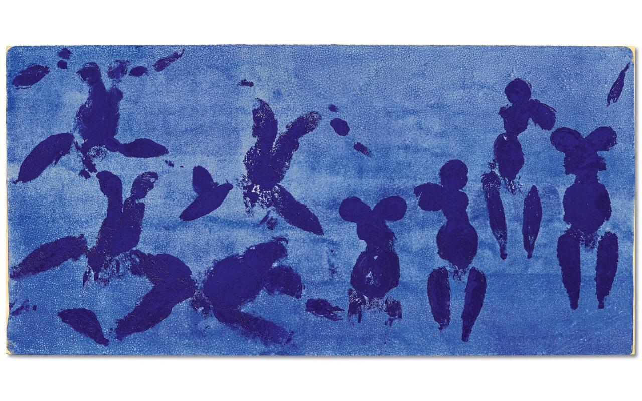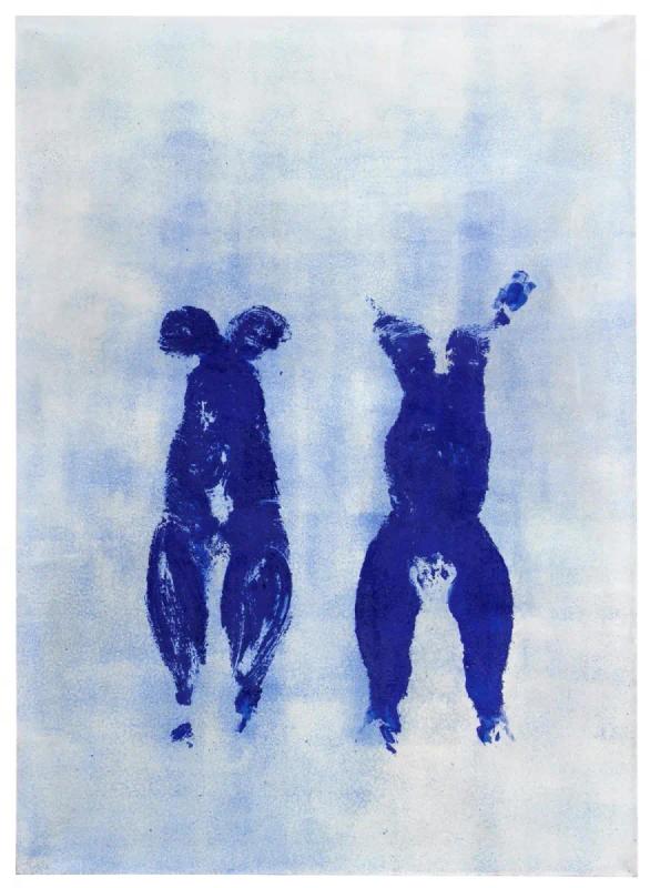 Klein's work in the Anthropometries series marks a significant moment in the history of art, where the act of painting transcends the mere application of pigment to canvas, becoming an event that engages both the creator and the observer in a shared experience of artistic creation and contemplation. Through these works, Klein challenged conventional notions of painting and sculpture, positioning the human body as a central element in the dialogue between material and immaterial, presence and absence, form and void.